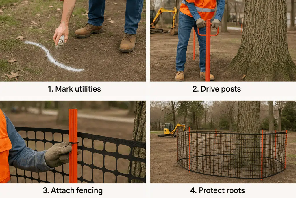Tree protection is only as good as the barriers that enforce it. Proper installation prevents both accidental damage and deliberate shortcuts by construction crews.
